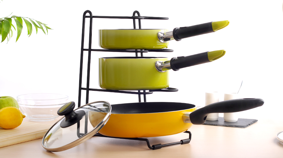 你的鍋總是堆在一起,拿出一個就必須要帶出另外的一群?這樣堆在一起還容易導(dǎo)致鍋碗瓢盆受到細(xì)菌侵?jǐn)_。其實(shí)只需要添一個廚房多用架,把鍋掛在上面就好啦!這樣還可以自然瀝干鍋內(nèi)的水分,維護(hù)鍋的清潔,使用起來還特別方便。