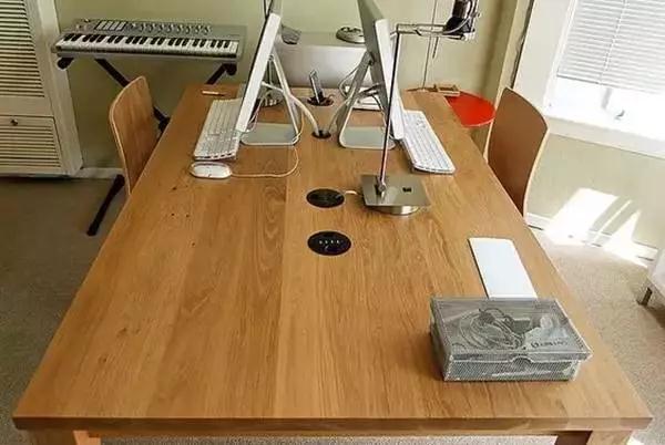 ? 既然不能攤在面上,那就考慮安置在底下吧~ 把插座設(shè)置在桌底下,既美觀又能解放臺(tái)面空間。