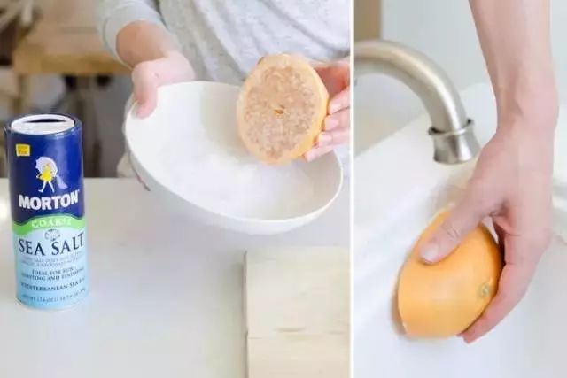 而洗手池上的污漬,檸檬和鹽就能輕松搞定。檸檬粘上食鹽,在洗手臺上擦拭沖洗,立馬煥然一新。