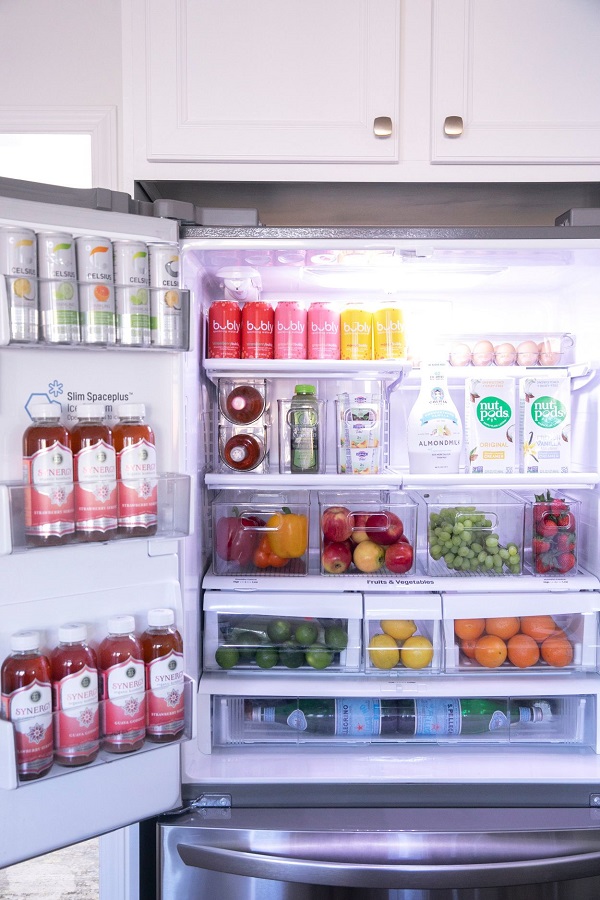 用簡單、干凈的塑料收納盒裝飾你過度擁擠的冰箱或餐具柜,這樣就算塞得滿滿當(dāng)當(dāng)你仍然可以清楚地看到你的庫存。
