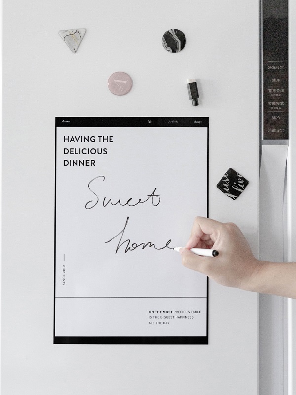 你可以放一個磁性擦除板在你的冰箱門上,寫下每天的飲食計劃或者你需要買什么東西。這將有助于你整理思路,同時提高工作效率。如果覺得太沉悶,不妨試試用彩色的筆做來記錄。