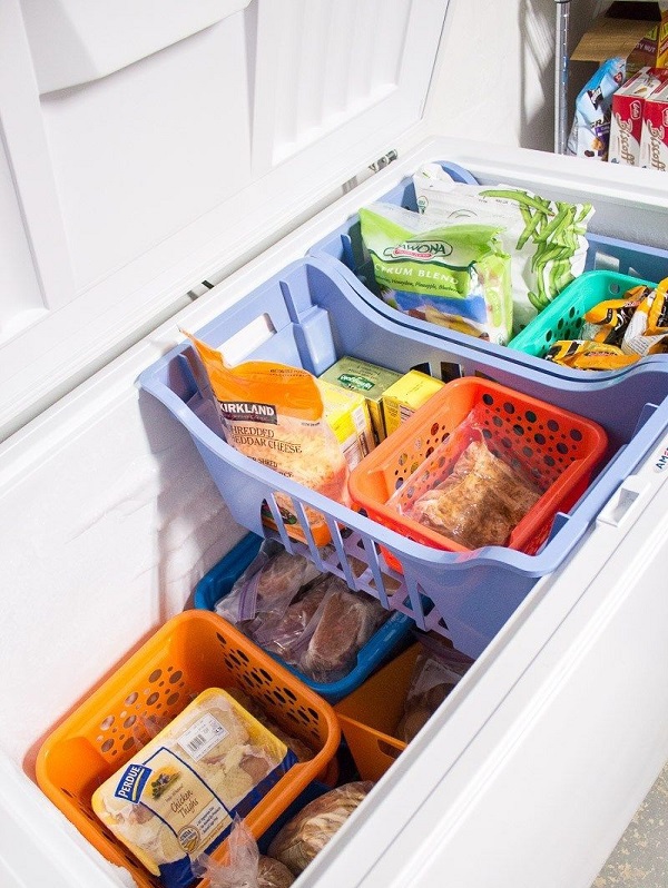 如果你的冰柜沒有很大的空間,可以用不同大小的塑料籃子進(jìn)行分格和分層,這樣做就可以在冰箱里儲存很多東西了。