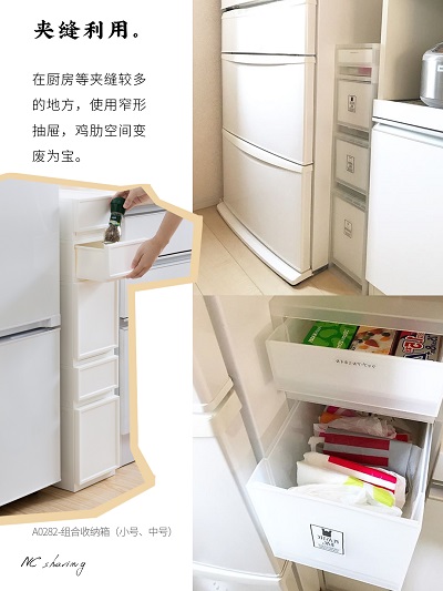 3.夾縫利用:在廚房等夾縫較多的地方,使用窄形抽屜,雞肋空間變廢為寶。