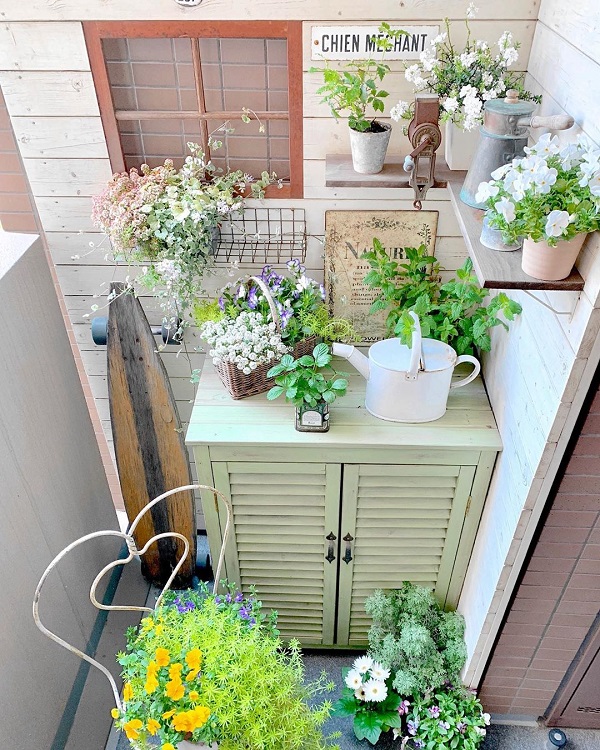 像迷你花園一樣的小陽臺,還有一種在DIY中安裝L形架子的想法,可以嘗試著利用舊的掛籃、木板等小東西。