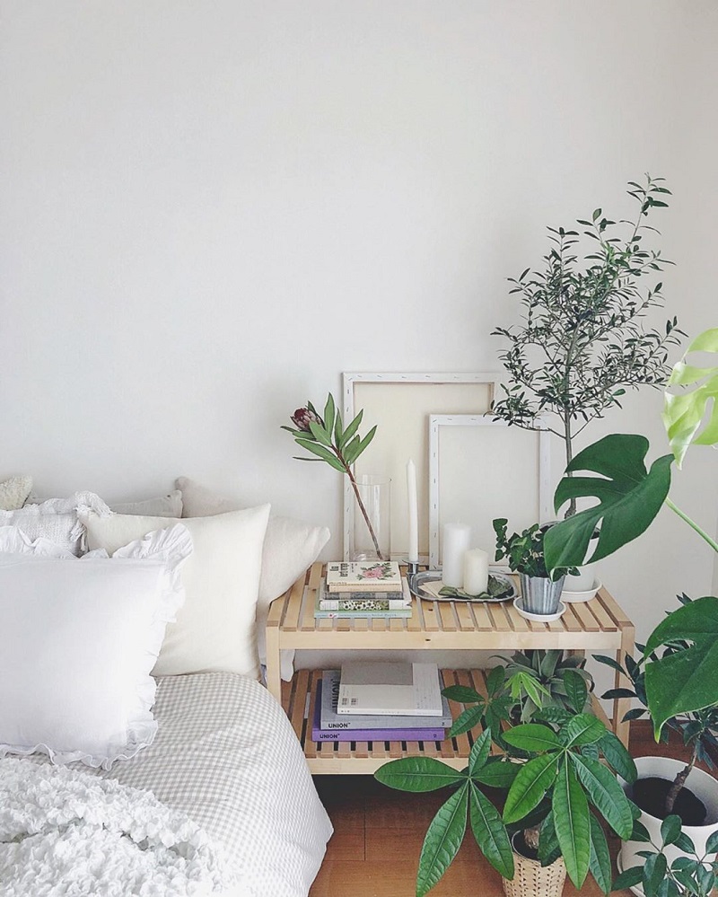盆栽的觀葉植物能快速地給房間帶入綠色,但是用單獨一盆裝飾的話會給人單調(diào)的印象。 這種時候,把高的和低的擺在一起,加上蠟燭和畫框等,一下子就成為高級的搭配。