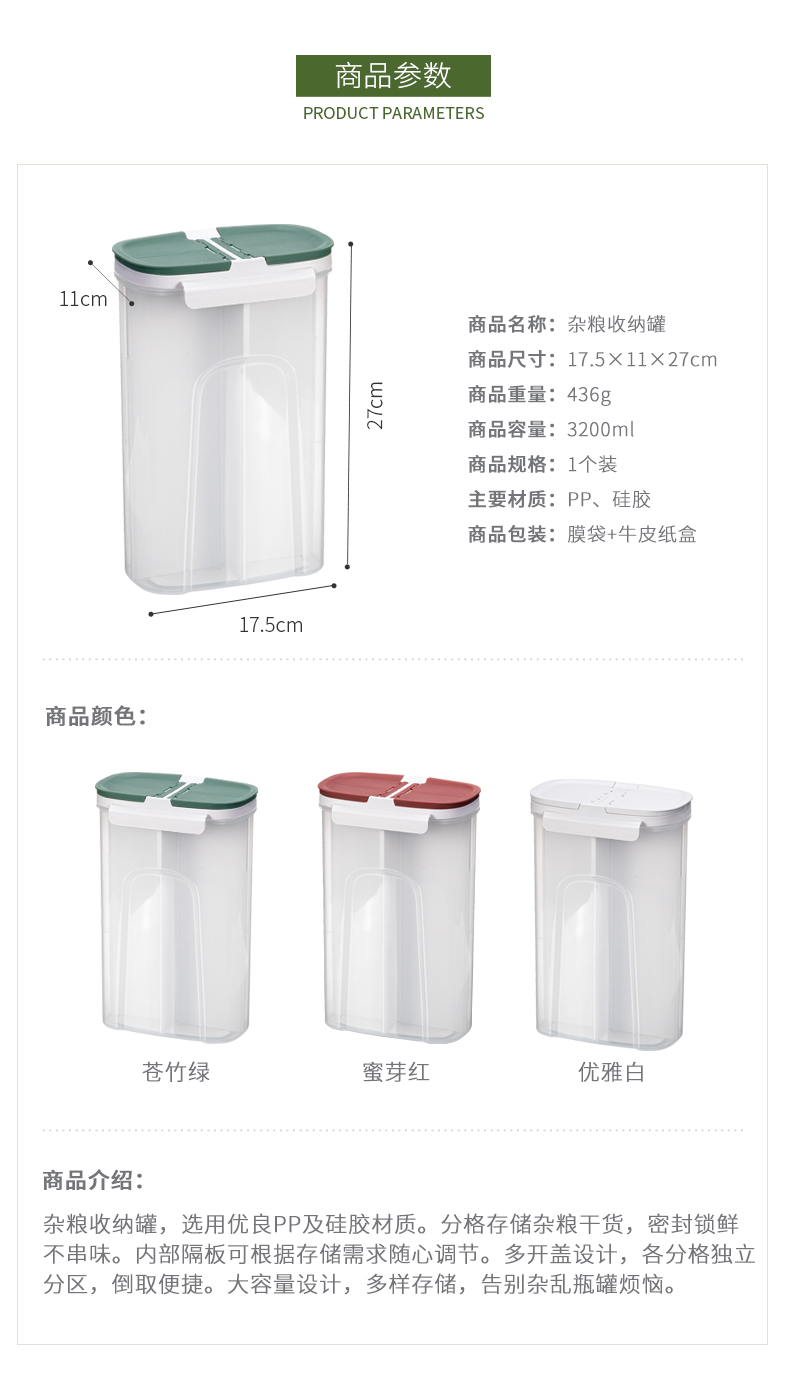 1、鎖鮮儲(chǔ)存:分格式儲(chǔ)存雜糧干貨,密封鎖鮮不串味