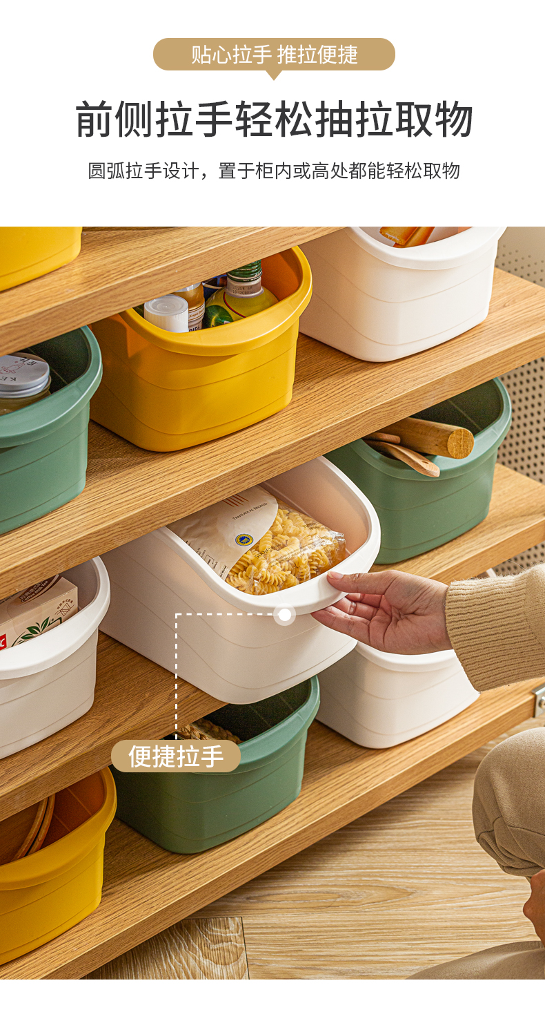 3、貼心拉手:圓弧拉手設計,置于柜內(nèi)或高處都能輕松取物