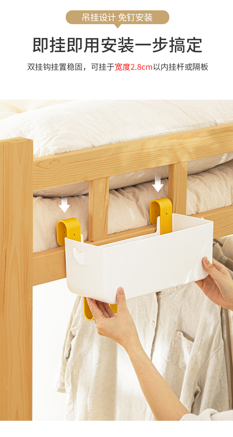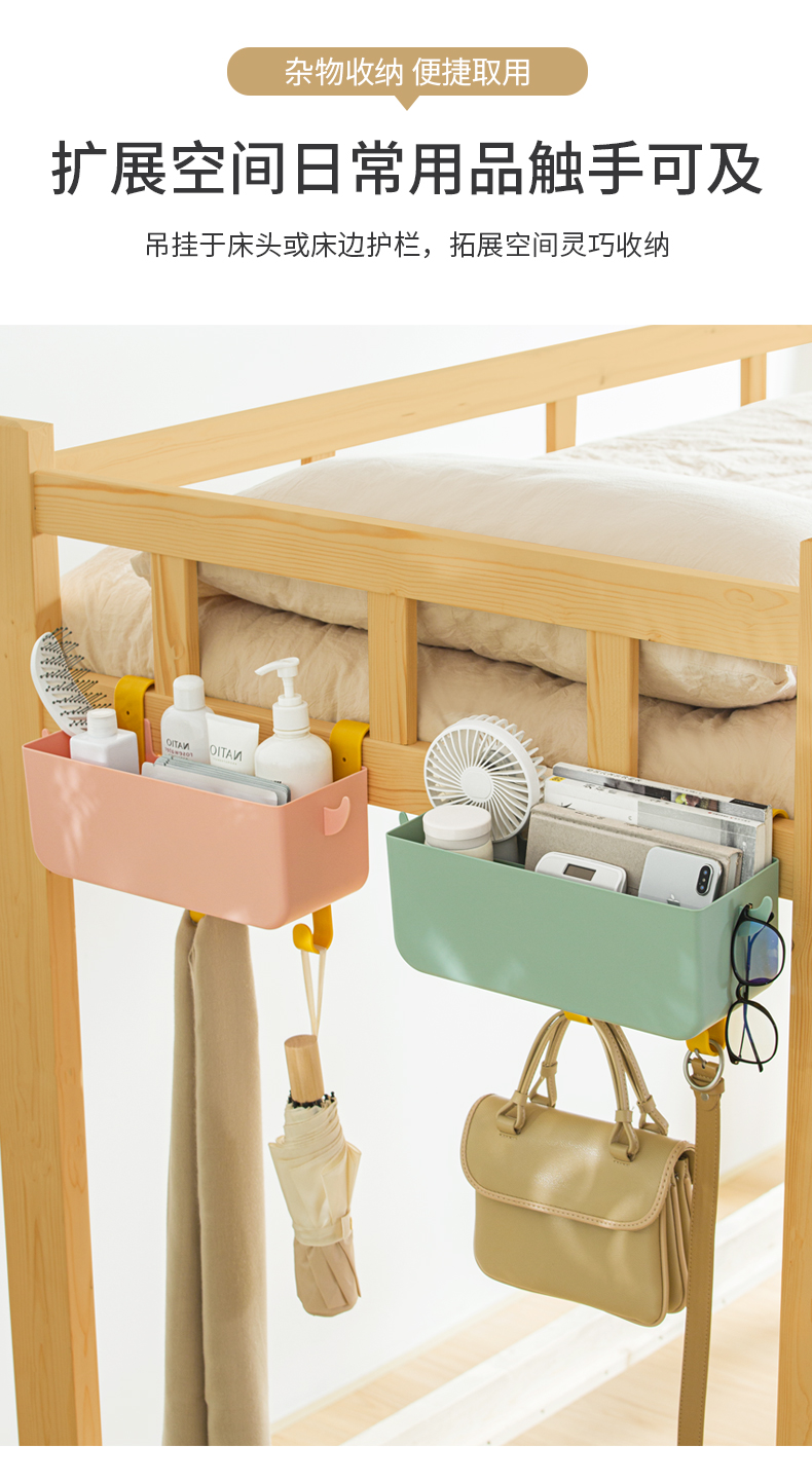 1.床邊收納:吊掛于床頭或者床尾的護(hù)欄,拓展空間