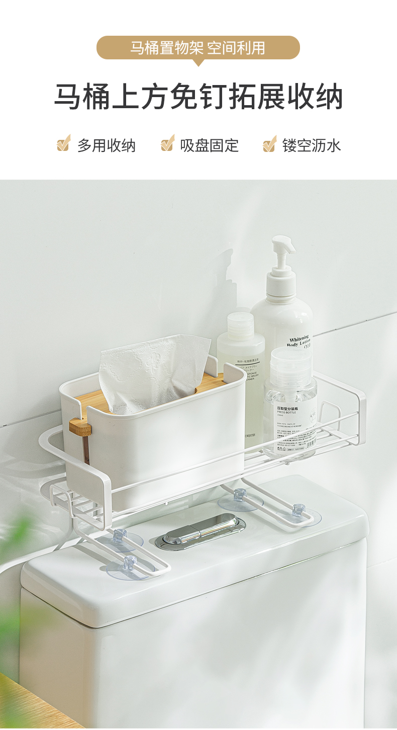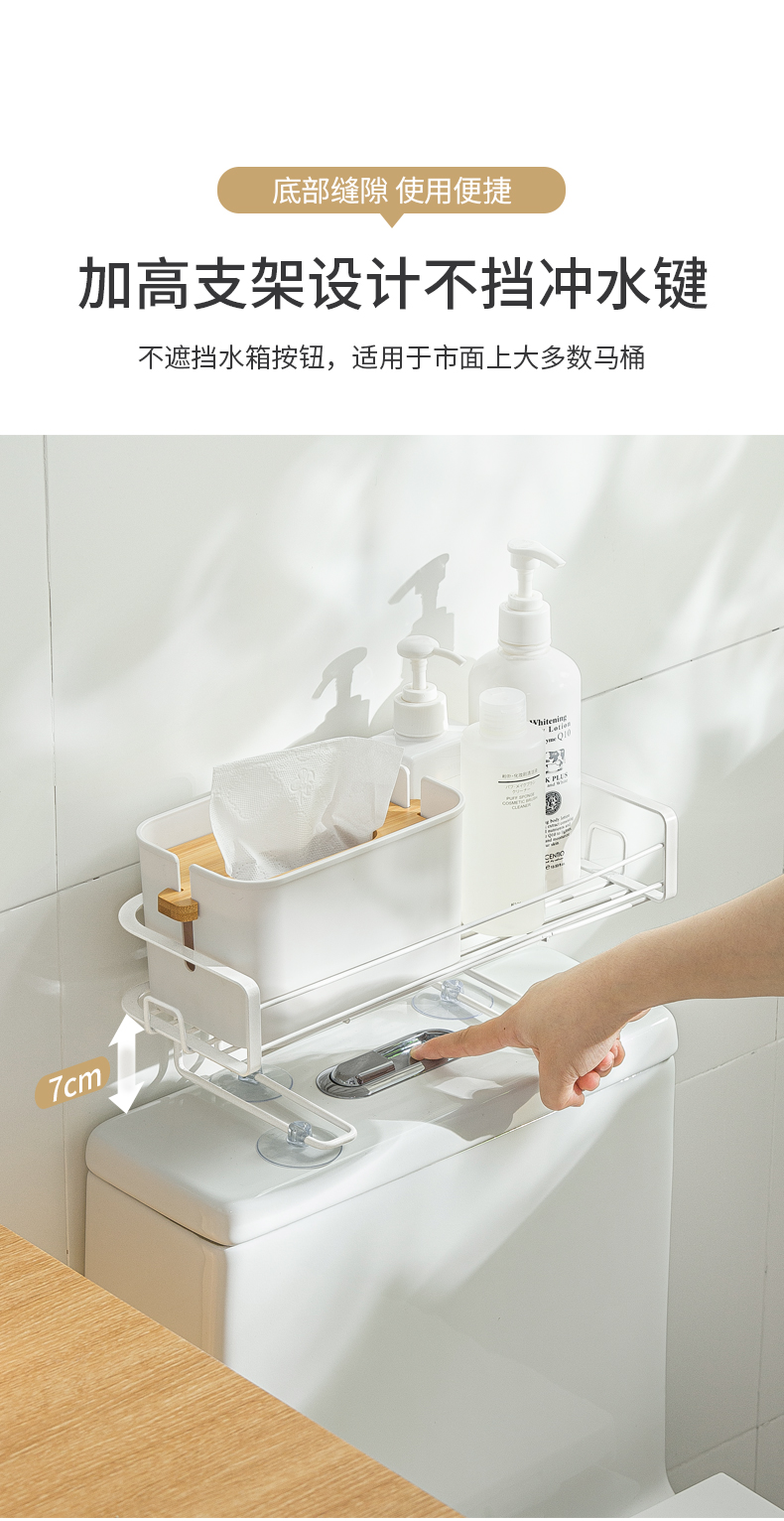 1、擴(kuò)展空間:置于馬桶水箱,收納各類浴室用品