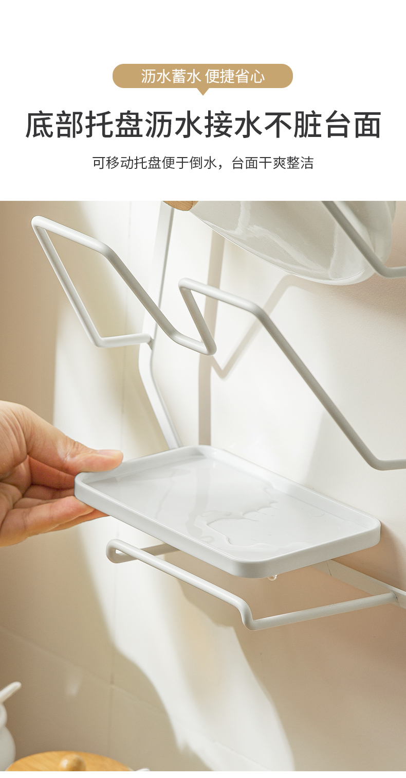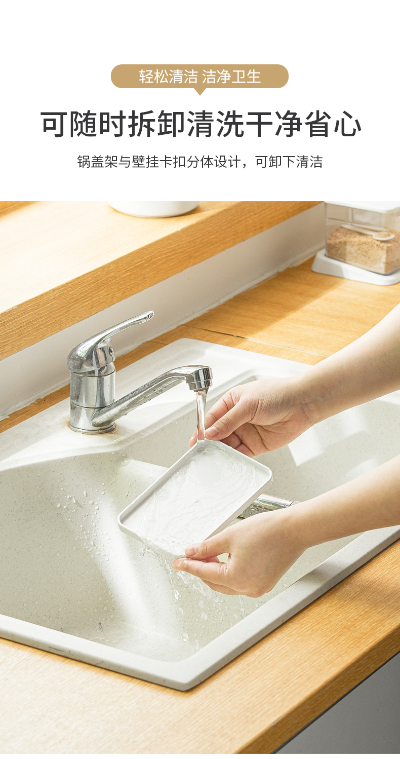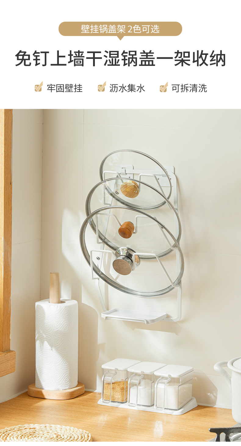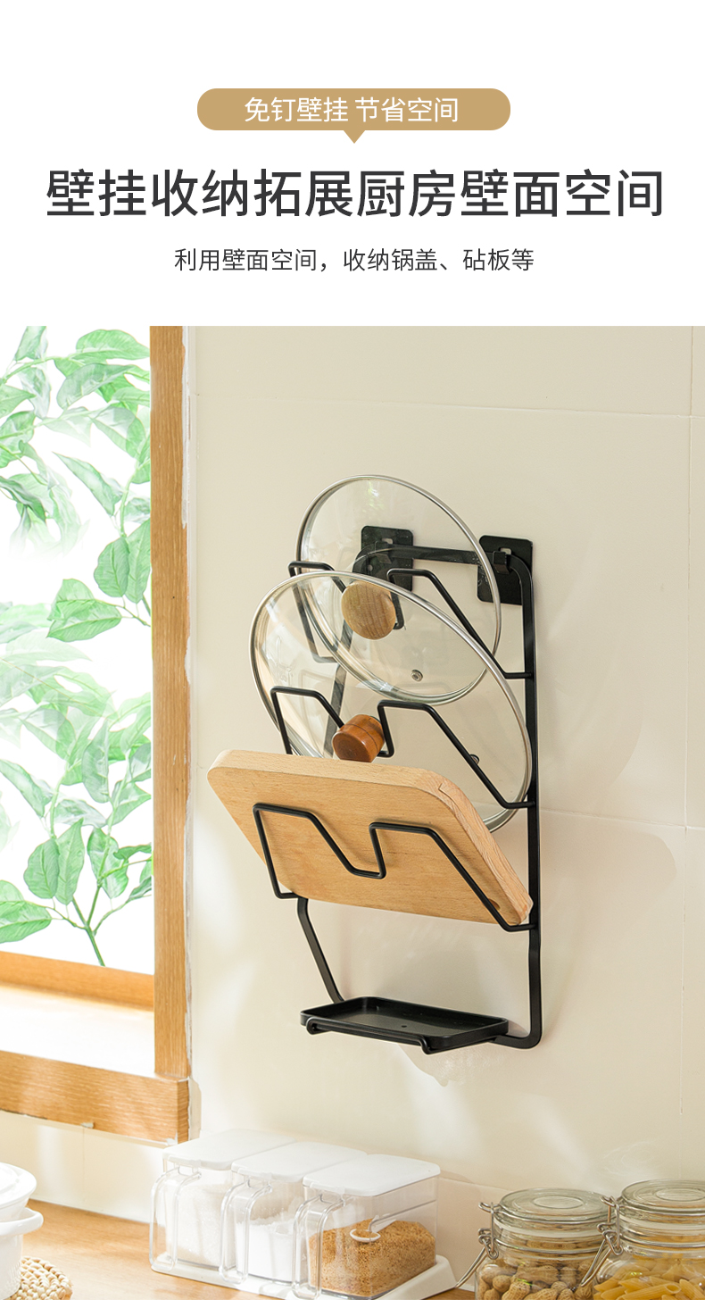 1、壁掛收納:免釘壁掛,拓展廚房收納空間