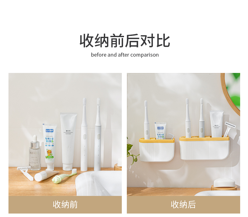 1、分類收納:不同功能分格,洗漱用品整潔收納