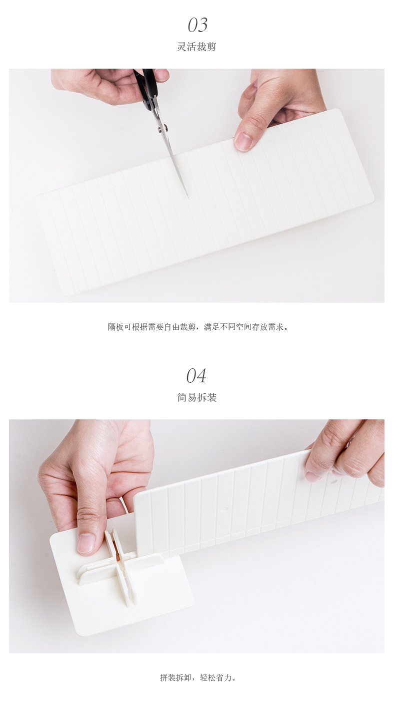3、靈活剪裁:可自由剪裁,滿足不同空間存放需求
