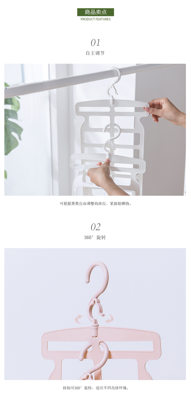 1、自主調(diào)節(jié):根據(jù)需求調(diào)整掛鉤位,緊抓晾曬物